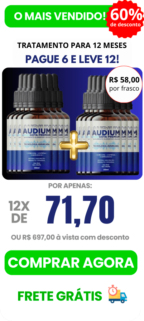 O pacote mais vendido é o de 5 meses de tratamento, que te ajuda a melhorar em até 5x mais sua audição, auxiliando na redução do zumbido de ouvido e proporcionando resultados duradouros. Além de possuir 65% de desconto, recomendamos sua escolha porque esse é o tempo em que observamos os melhores resultados no tratamento dos problemas de audição.